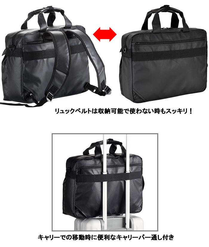 本体背面キャリーバー通し、リュックベルト、リュックベルト収納用ファスナー口