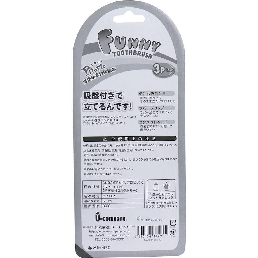 かわいい歯ブラシで磨けばブラッシングタイムが楽しみに♪●吸盤付きで洗面台等にスタンディングOK!磨き終わったらそのまま立たせて置ける。●ラバー加工で滑りにくく手にやさしいハンドル。●奥歯までキチンと届いて磨きやすいコンパクトヘッド。●カエル 3本セット。