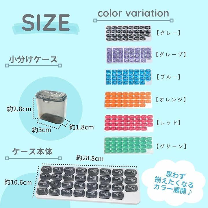 3world ピルケース 1か月 管理 保管 飲み忘れ防止 カレンダー 携帯用 小分け用 選べるカラー 飲み忘れや重複誤飲などでお困りではありませんか?雑多な種類の容器がイヤなミニマリスト様にもおススメ。1ヶ月分のサプリやお薬をコンパクトでおしゃれに管理・保管可能なケースはいかがでしょうか?日付が1~31までプリントされた小分けケースは、通学・通勤・外出時には1個ずつ超コンパクトに持ち歩けるのも嬉しいポイントです。