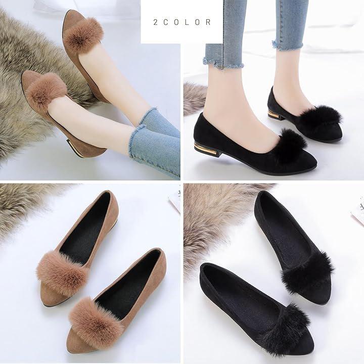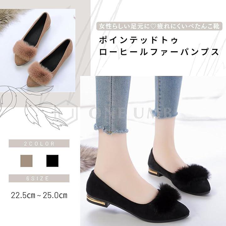 疲れにくく、歩きやすいローヒールファーパンプス。