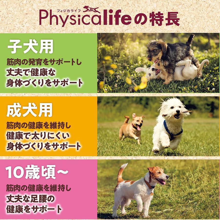 シニア犬の全身の重要な筋肉の健康を維持するために、厳選素材の鶏肉・魚・大豆由来のタンパク質をバランスよく豊富に含み、胃で崩れやすい粒により、タンパク質消化率92.6%を実現(分析値代表例 ユニ・チャーム調べ)/10歳頃からの身体の変化に配慮した栄養バランス設計/筋肉の健康を維持することで関節の健康も維持します/ビタミンE強化で健康維持により、免疫力を保ちます(フィジカライフ成犬用比約250%)