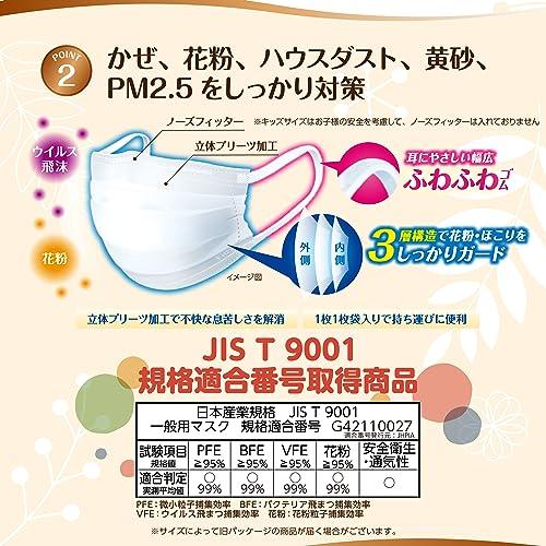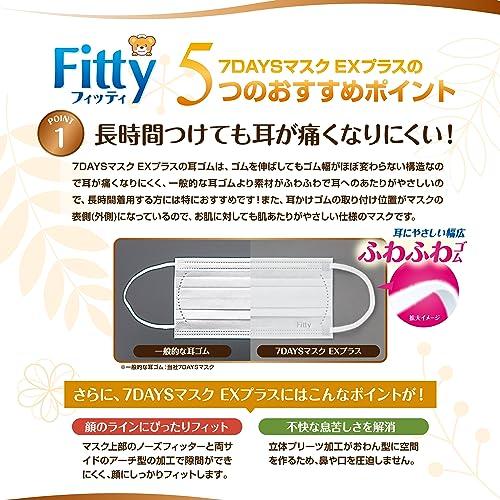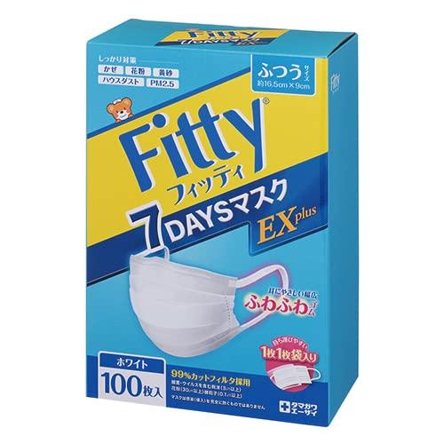 【長時間使用しても耳が痛くなりにくい】7DAYSマスク EXプラスは、ゴムを伸ばしてもゴム幅がほぼ変わらない構造であり、耳が痛くなりにくいふわふわゴムを採用しているため長時間の着用にもおすすめです。顔のラインにぴったりフィットし、立体プリーツ加工で不快な息苦しさを解消。耳かけゴムの位置が表側になっているため、肌あたりがやさしい仕様のマスクです。【不織布3層構造でしっかりガード】3層構造の不織布を使用しており、かぜ・花粉・黄砂・ハウスダスト・PM2.5をしっかり対策。フィルタ捕集効率試験で、細菌やウイルスを含む飛まつ、花粉や微粒子をカット(BFE試験/VFE試験/PFE試験)。【持ち運びに便利な個包装】 1枚1枚が個別に包装されているため、通勤・お出かけ・出張・旅行などの持ち運びにも便利です。いつでも衛生的に使用できるため、バッグの中にスペア用としてやご家庭や会社などでの備蓄用にもご活用いただけます。【使用方法】①表と裏を確認します。耳かけゴムが接着されている面が外側(顔にふれない面)です。②ノーズフィッターを鼻の形に合わせます。③顔にフィットさせながら耳かけゴムを掛けます。④顔の大きさに合わせてプリーツを上下に広げます。マスクは感染(侵【商品詳細】内容量:100枚入り(50枚×2箱)/サイズ:ふつう/マスクサイズ:16.5cm×9cm/カラー:ホワイト(白)【注意事項】マスクは感染(侵入)を完全に防ぐものではありません。入)を完全に防ぐものではありません。原産国 中国