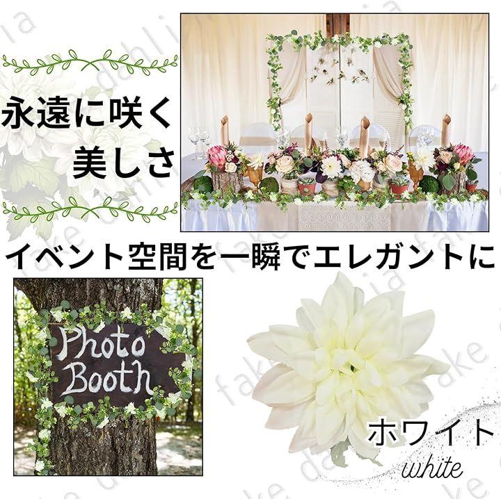 幅広い用途に対応:フェイクダリヤはリビングや玄関、寝室のインテリアはもちろん、ウェディングのブーケやパーティーのテーブル装飾、店舗ディスプレイなど多彩なシーンで活躍します。