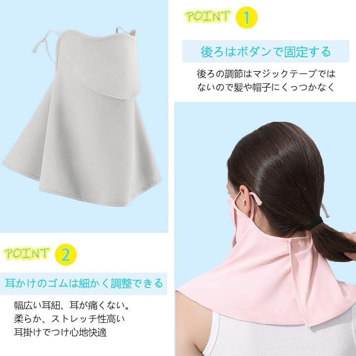 ネック、顔、目元と目尻までカバー、紫外線からしっかりガードでき、強い日差しから顔と首を守ってくれます。