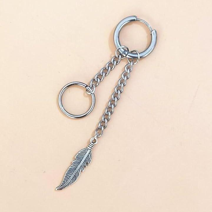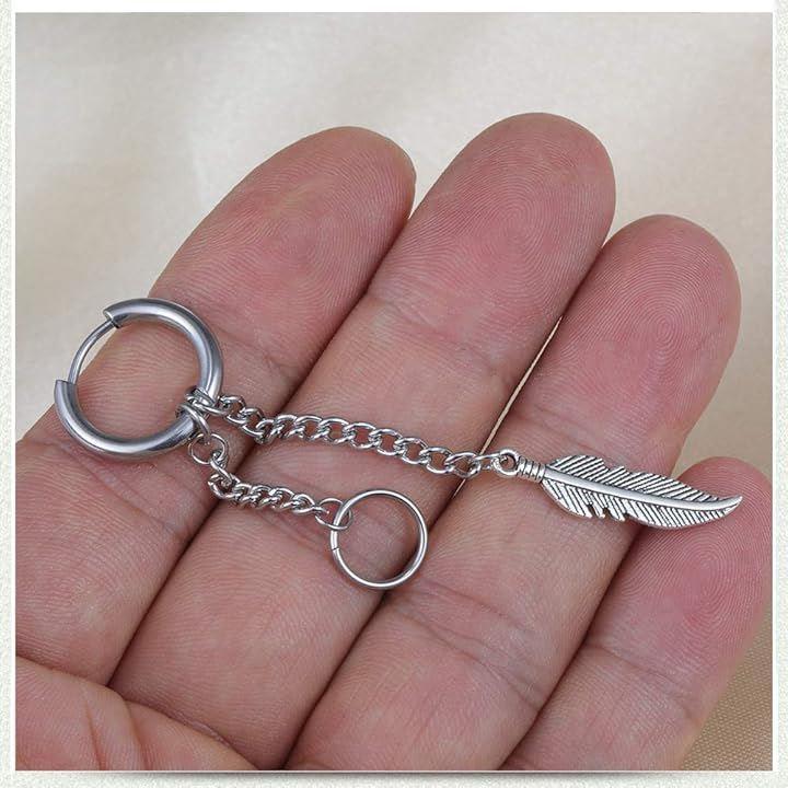 大人気のフェザーフープピアス。リングチェーン付 ゆらゆらと揺れて存在感あり。