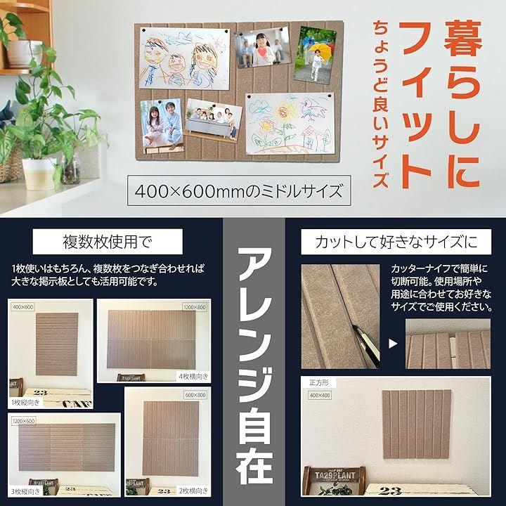 「自由にアレンジできるDIY向け仕様」 400x600mmの程よいサイズ感で、1枚使いはもちろん、複数枚をつなぎ合わせれば、大きな掲示板としても活用可能。
