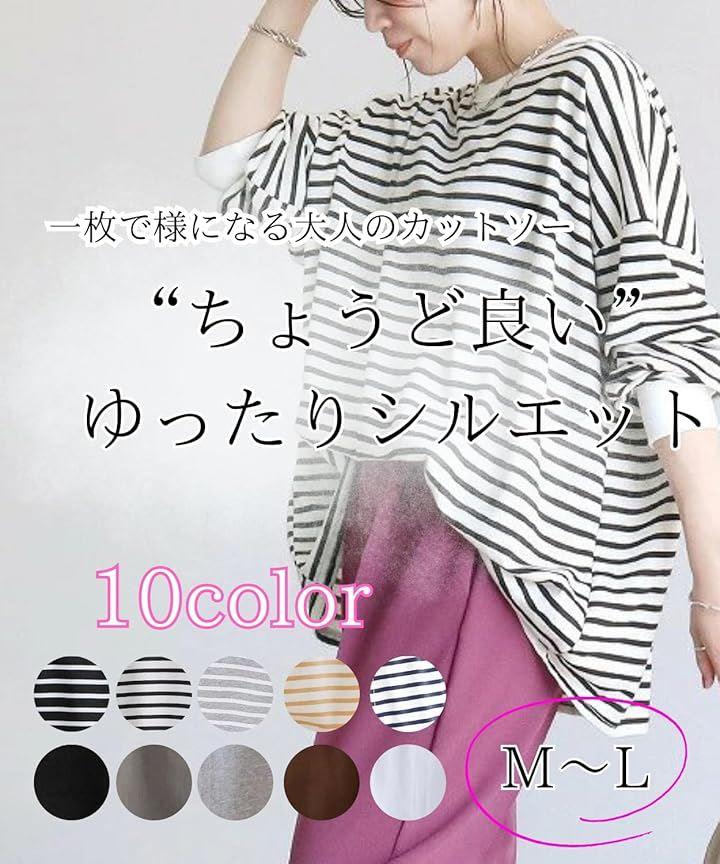 飽きのこないベーシックなデザインの無地、ボーダーカットソー “ちょうど良い”ゆったりシルエットで、1枚で着ても、雰囲気のある着こなしに。