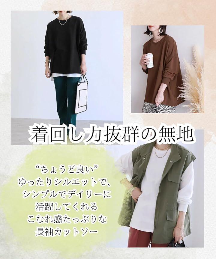 ドロップショルダーとリブ仕様の袖口をたくし上げればシンプルなカットソーもこなれ感のある大人カジュアルスタイルになります バランスよく着こなせる丈なので、ボトムスを選ばずスカートともパンツとも相性抜群。