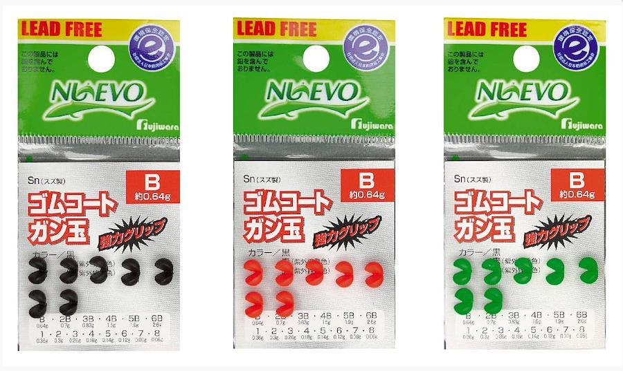 オールゴムコートのガン玉なので、糸の損傷軽減。指にも滑りにくいので扱いやすいガン玉です。黒は警戒心を抑えたい時に、赤、緑は紫外線発色で集魚力抜群なので、メバリングなどにもオススメです。