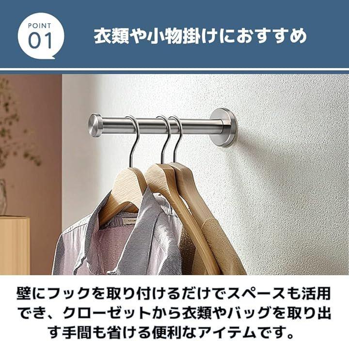 「衣類や小物掛けにおすすめ」衣類や防止、バッグなどを掛けて収納・ディスプレイしたいときに便利な壁フック。