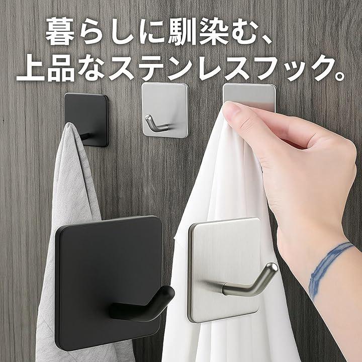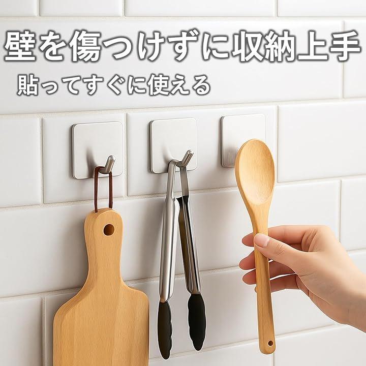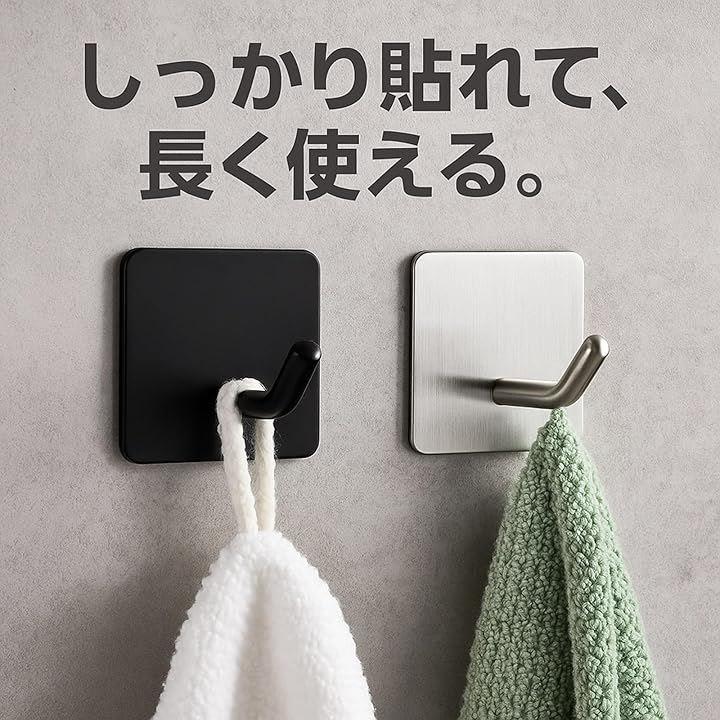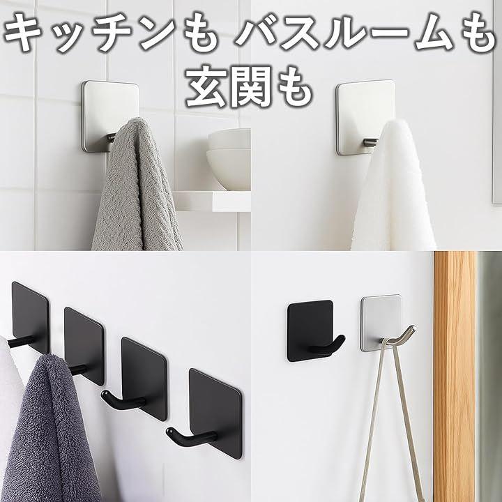 コート、タオル、バッグ、キッチンツール、掃除用具など、さまざまなアイテムを掛けるのに重宝いたしますので、玄関・リビングなど、家中どこでも使えるフックです。