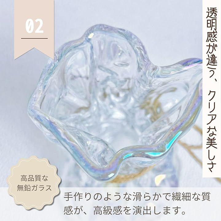 「高品質な無鉛ガラス」 人工吹き付けの無鉛ガラスを使用しており、透明度が高く、輝きがあります。