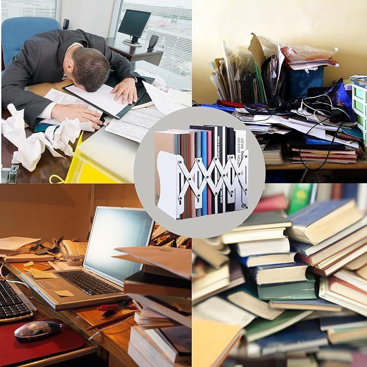 「効率的な整理」この伸縮型ブックエンドは、デスクトップをすっきりと整理し、勉強や仕事の効率を高めます。