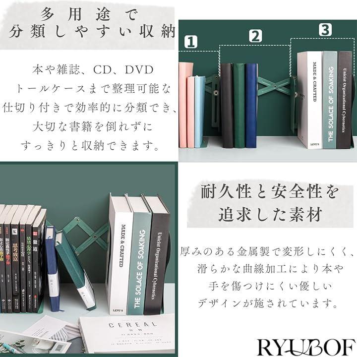 伸縮可能な金属製のブックエンド2個セットは、最大幅50cmまで自由に調整でき本の厚さ1cmなら約47冊収納可能です。