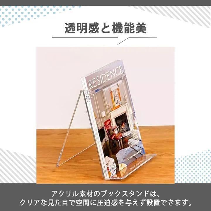 「透明感と機能美」 アクリル素材のブックスタンドは、クリアな見た目で空間に圧迫感を与えず設置できます。