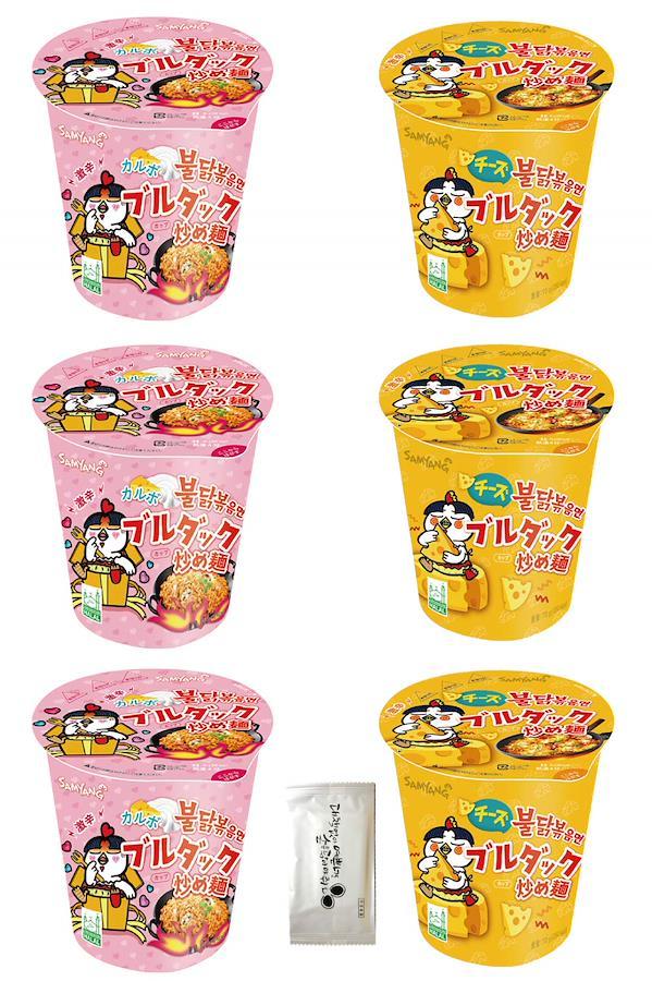 韓国ブルダック炒め麺カップの人気2種類のセットですカップ麺なので、非常食 保存食に最適ですカルボ プルダック炒め麺カップ | 内容量:80g(麺57.5g)×3個 | とろーり濃い目の旨辛クリームパスタそのものチーズ プルタック炒め麺カップ | 内容量:70g(麺51.5g)×3個 | 豊かなチーズの風味を味わえるやみつきになる一品!THE SUPのお手拭きがセットで付いています【重要】メーカーによる商品リニューアルに伴いパッケージ(内容量も含む)変更が行われた場合、新パッケージでお届け致します事ご了承願います。