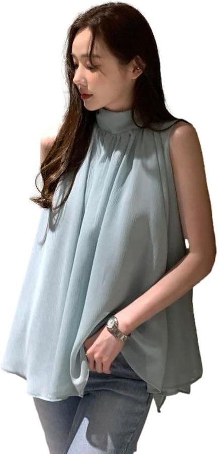 「ふんわり軽やかに揺れる、シフォンブラウス」 動きに合わせてふんわりと軽やかに揺れる、優し気な表情のノースリーブブラウス。