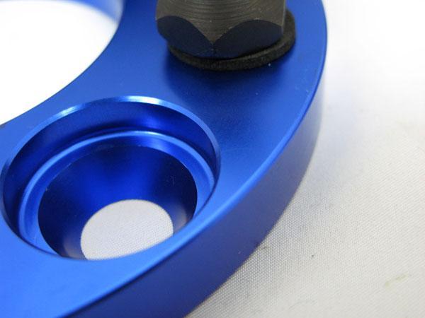通常のスペーサーでは対応が難しい大幅なオフセット・トレッドの変更に対応可能!足元がキラリと光る!ブルーアルマイト塗装のワイドトレッドスペーサーです。