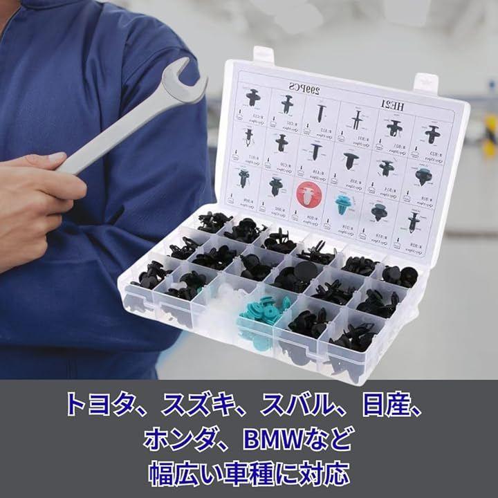 18種類・299個のリベットがセットになっており、日常的なメンテナンスや修理に十分対応できます。