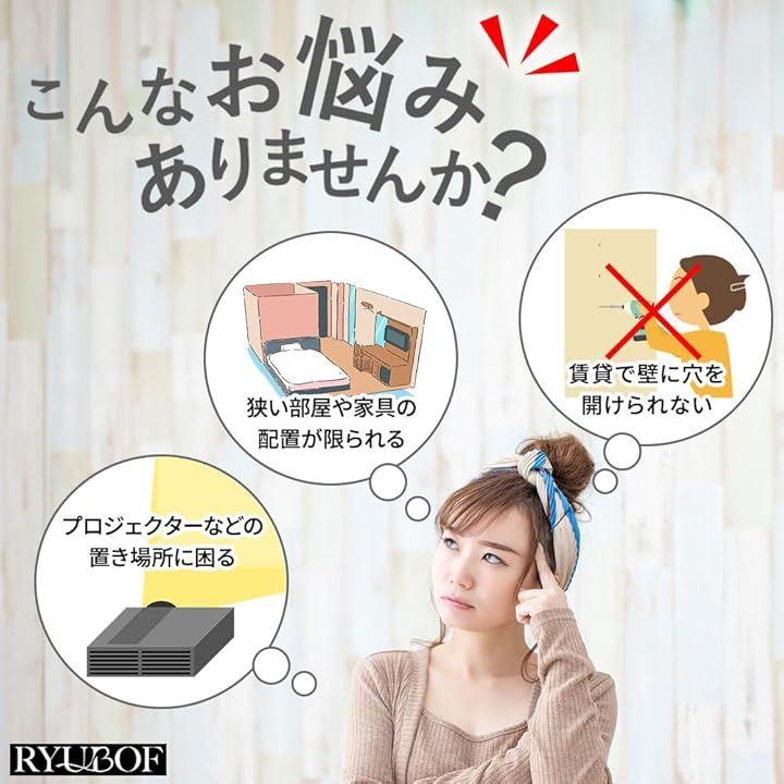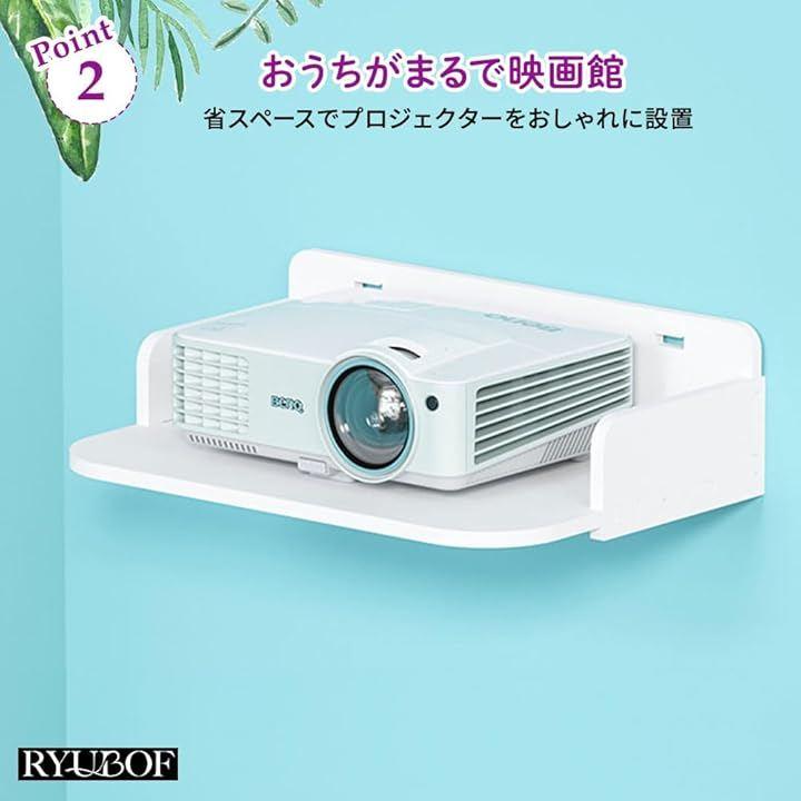 壁に穴を開けず設置できる仕様で、プロジェクターやリモコン、小型スピーカーなどの整理に最適。