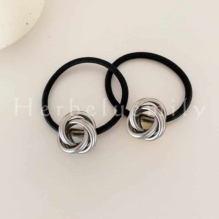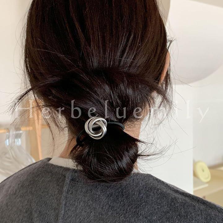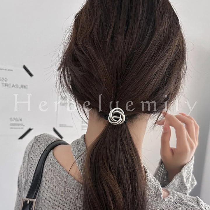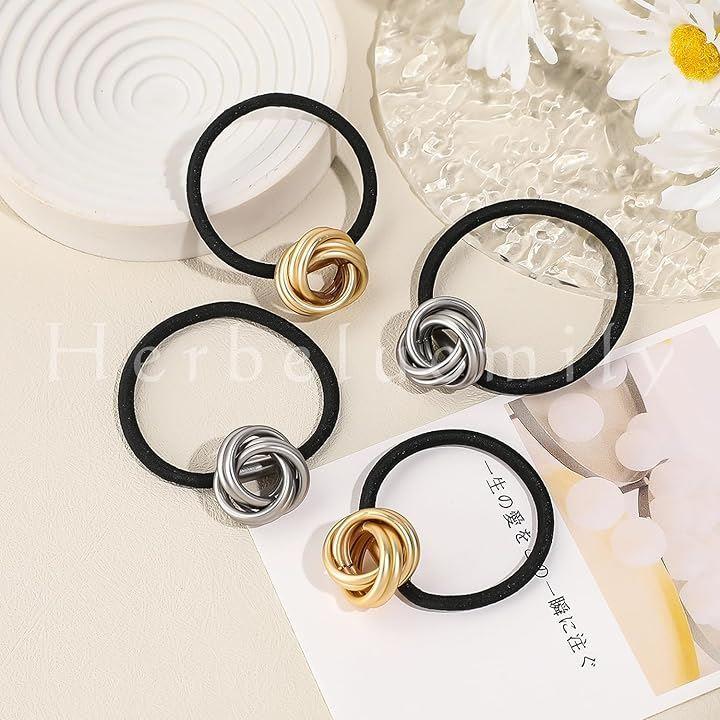 「ノットモチーフがおしゃれな大人向けのヘアゴム」ねじりデザインのメタルパーツのついたヘアゴムです。