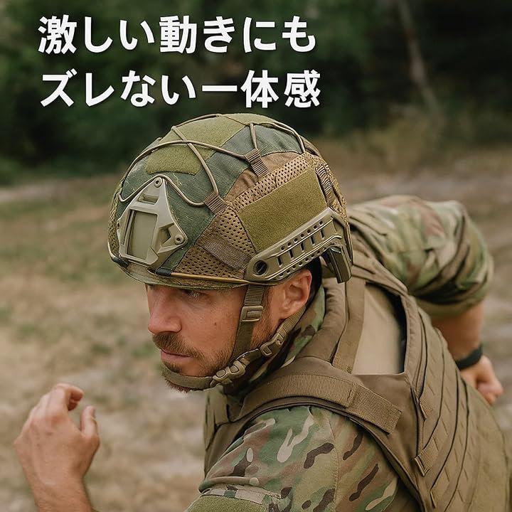 アウトドアやサバゲーの激しい動きにも耐え、ヘルメット本体をしっかりガードするヘルメットカバーです。
