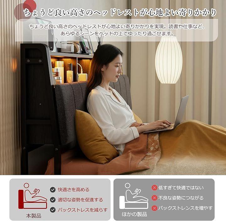 「心地よさとデザイン性を両立した高級感あふれるヘッドボード」高密度で適度な反発力を持つ3Dフォームが、背部をしっかり支えながらも、柔らかく包み込むような座り心地を実現。