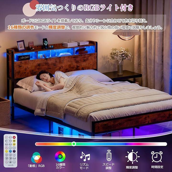 「居眠り雰囲気つくりのRGBライト付きヘッドボード」ヘッドボードに内蔵されたマルチカラーLEDライトは、お好みの色や明るさ、点滅速度を自由に調整可能。