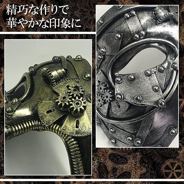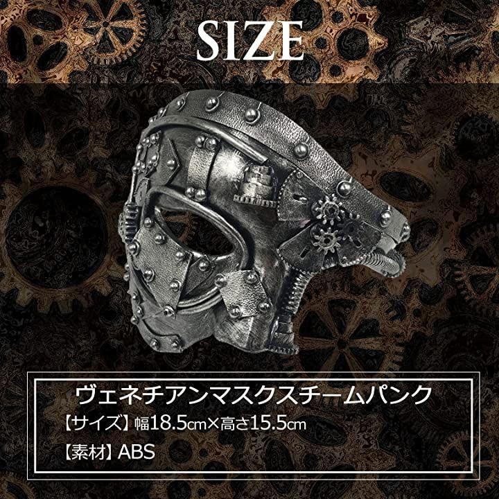 ヴェネチアンマスクスチームパンク「サイズ」幅18.5x高さ15.5cm「素材」ABS「カラー」アンティークゴールド、アンティークシルバー、アンティークブロンド、ブラック*モニターの環境により、色の見え方に若干差が生じる場合がございます。