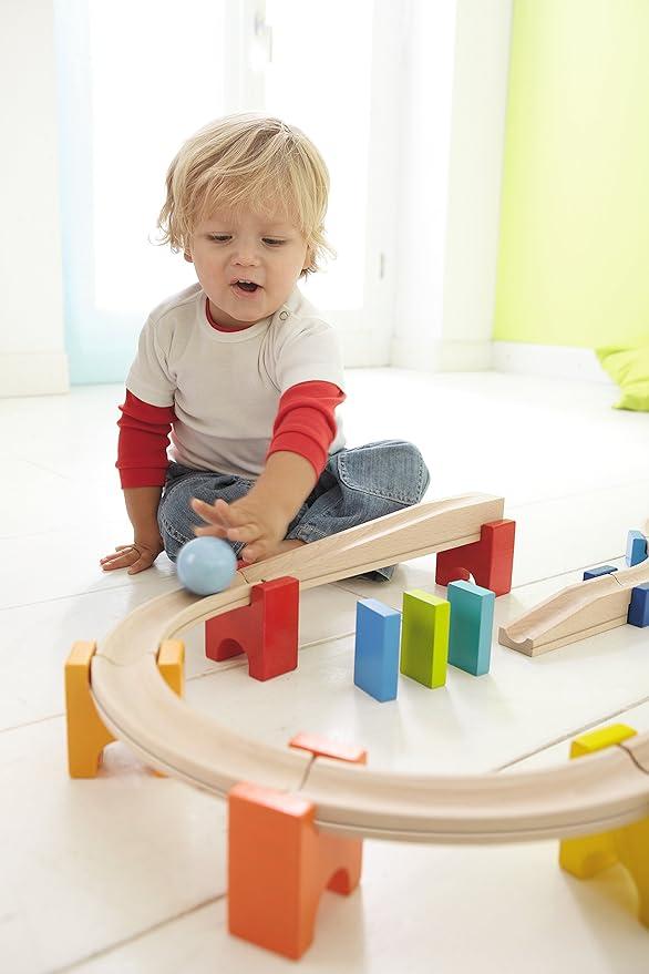 この商品について 対象年齢:1歳6ヶ月~ サイズ: 直線レール(スタート部分):32×4×4cm、直線レール(スロープ):32×4×3.5cm、直線レール(エンド部分):16×4×3.5cm、ボール各種:直径4.5cm 材質: ブナ ドイツ製もっと見る