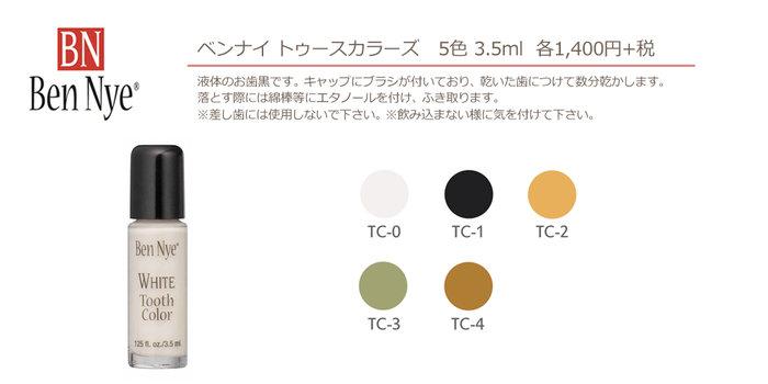 液体のお歯黒です。キャップにブラシが付いており、乾いた歯につけて数分乾かします。落とす際には綿棒等にエタノールを付け、ふき取ります。※差し歯には使用しないで下さい。※飲み込まない様に気を付けて下さい。【カラー】 5色展開TC-0(オハジロ)TC-1(オハグロ)TC-2(煙草のヤニ風)TC-3(ゾンビ風グリーン)TC-4(ブラウン)