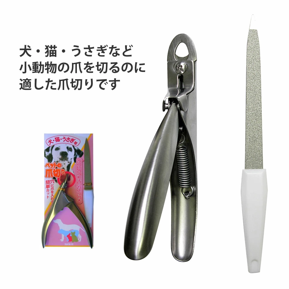 【商品情報】●犬・猫・うさぎなど小動物の爪を切るのに適した爪切りです。●爪を切る穴の大きさを径8ミリとして小さな爪も大体6ミリまでくらいの太さの爪まで万遍なくカット出来ます。●錆に強く汚れのつきにくいステンレスを使用して特に刃先は職人が手作業でステンレス刃物鋼を精密に仕上げていますので軽い力でカット出来ます。●粒子の細かなサファイア粒子を塗布したヤスリをセットしました。デリケートな爪を柔らかなタッチできれいに仕上げることが出来ます。