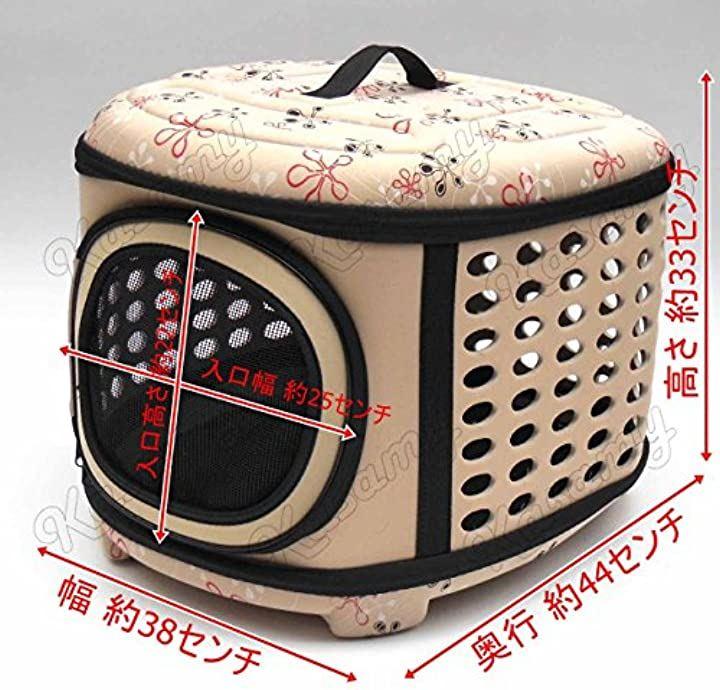 サイズ(約): 奥行 44cm x 幅 38cm x 高さ 33cm 対応可能体重 : 5kg 以下
