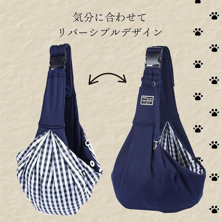 *幅広ストラップで飼い主さんもラクラク。しかも長さ調整も簡単だから、男女兼用でお使いいただけます *突然の飛び出しを防止するフック&ボタンつき *可愛いリバーシブルデザイン&汚れがつきにくいポリエステル素材 約13kgまでの犬・猫・小型動物にお使いいただけます。