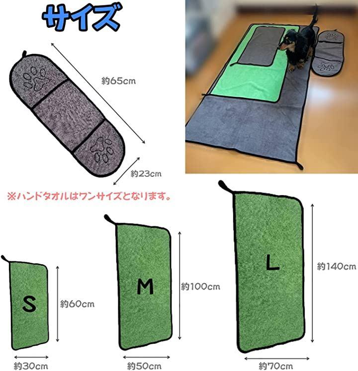 ・「サイズ」ハンドタオル:約65cmx約23cm 敷タオル:Sサイズ 約30cmx約60cm Mサイズ:約50cmx約100cm Lサイズ:約70cmx約140cm*ハンドタオルはワンサイズです。