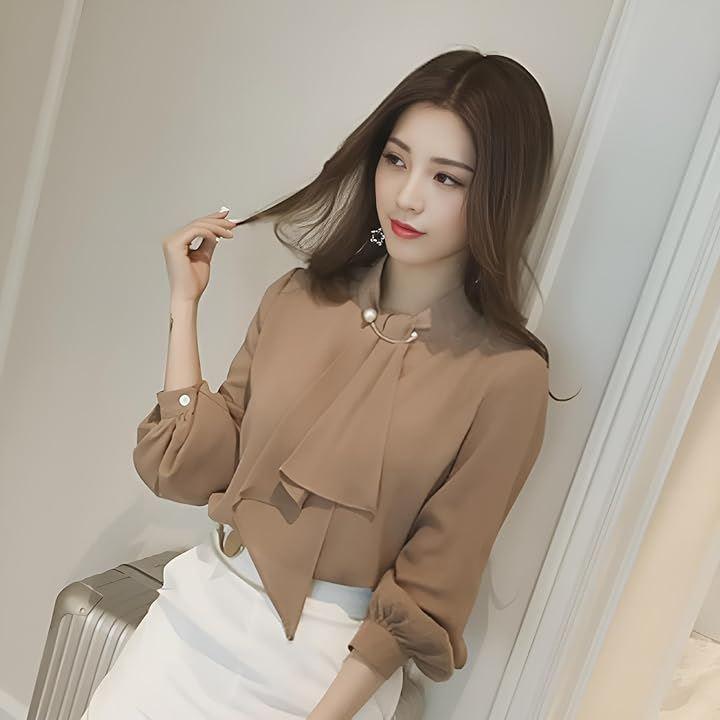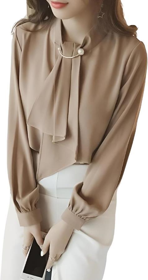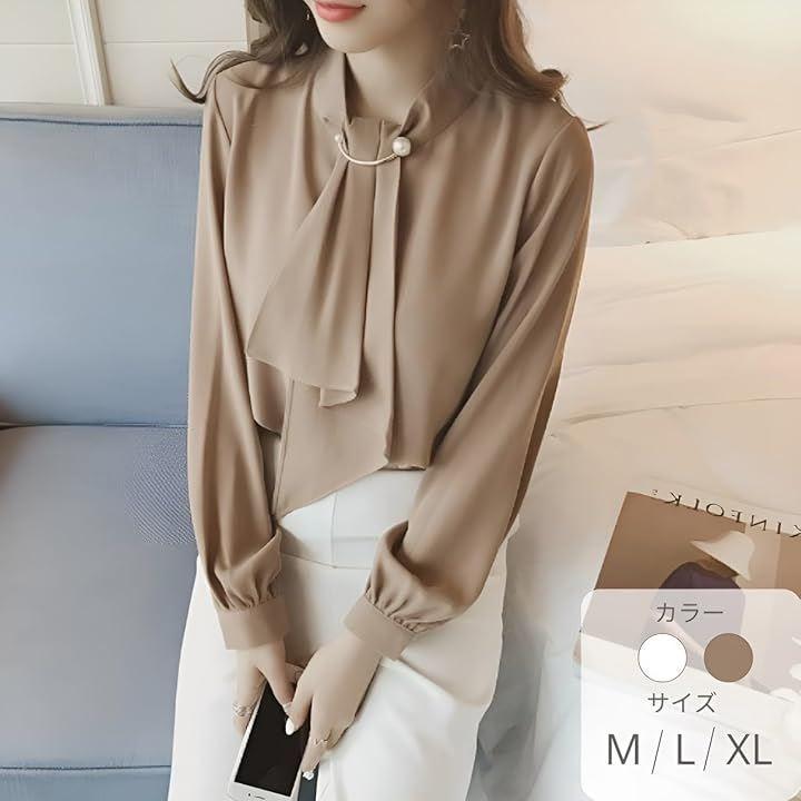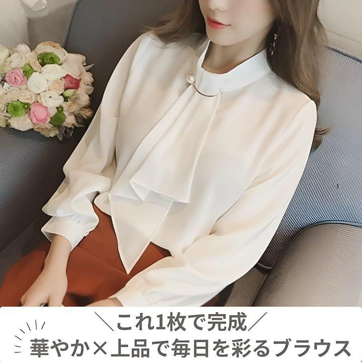 「商品説明」 上品さと華やかさを兼ね備えた、長袖ボウタイブラウスが登場。