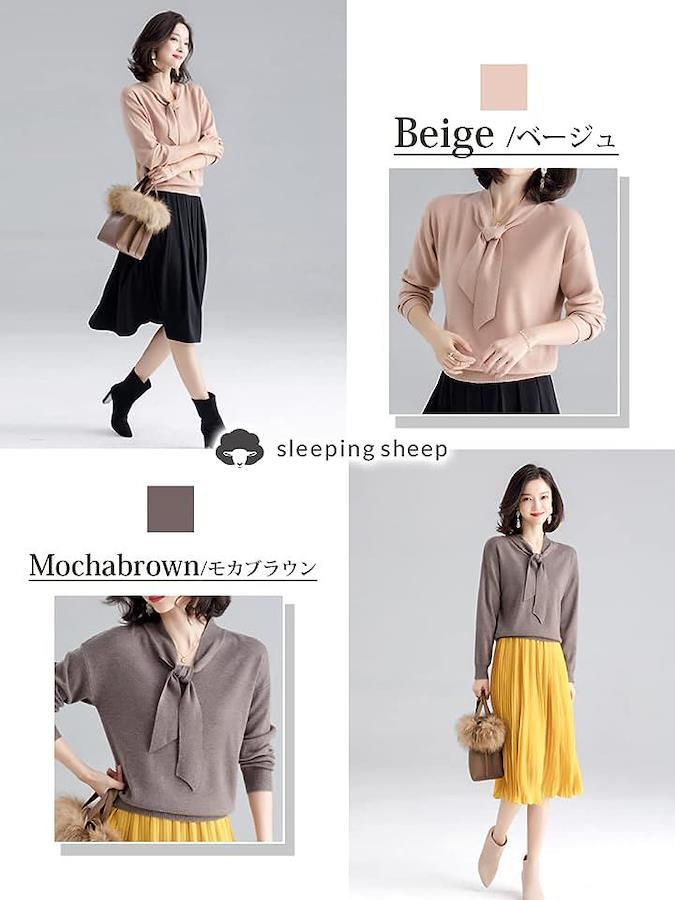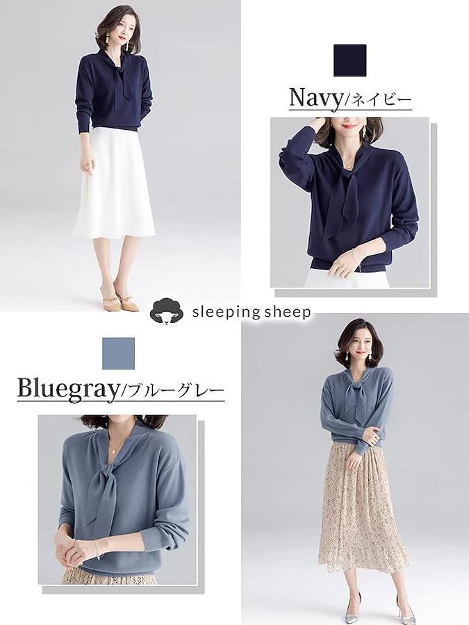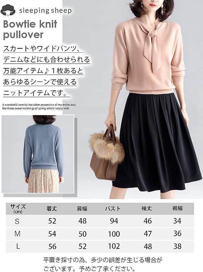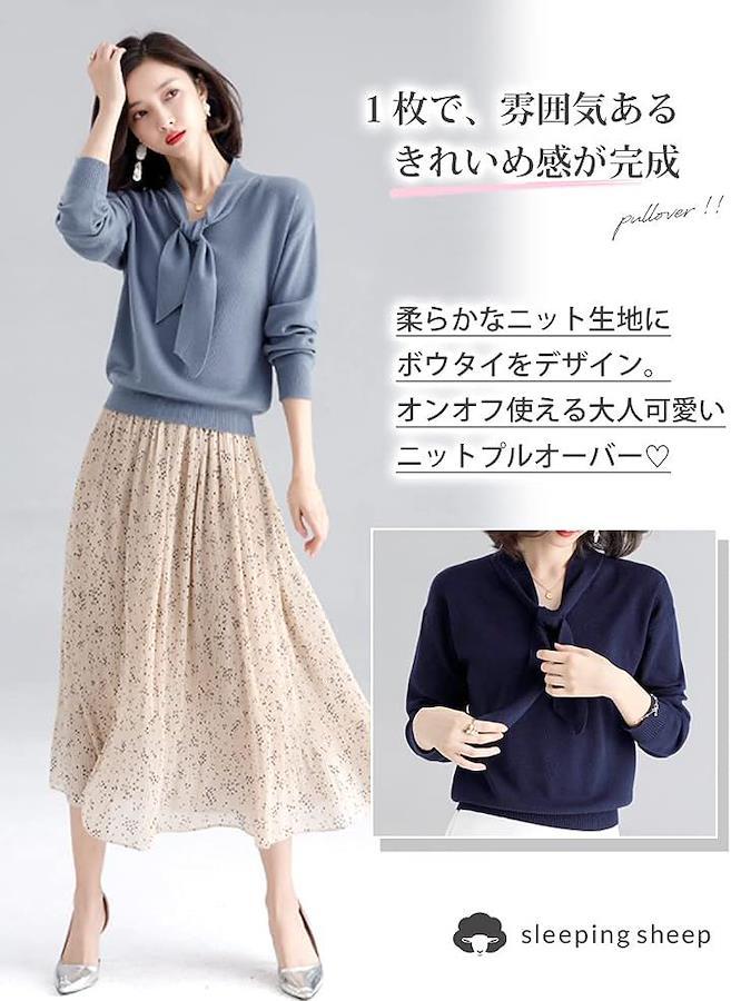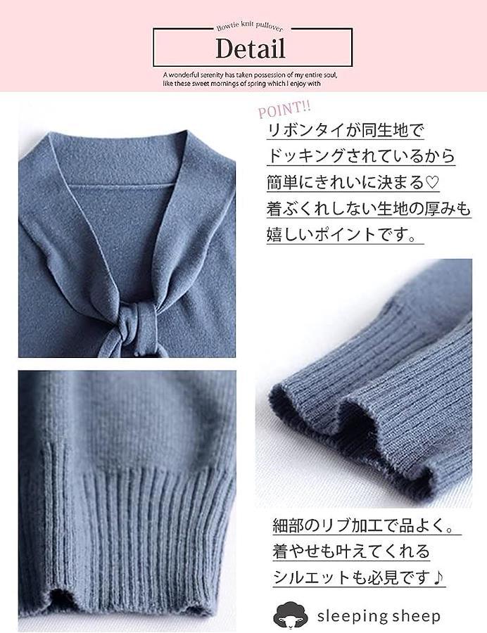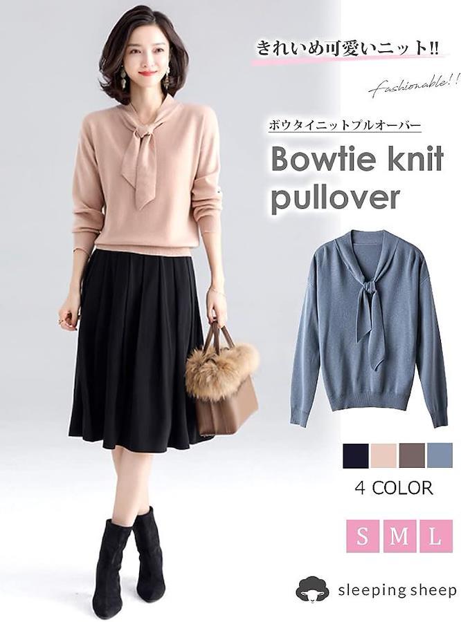 1枚で、雰囲気あるきれいめ感が完成する、ボウタイニットプルオーバー。