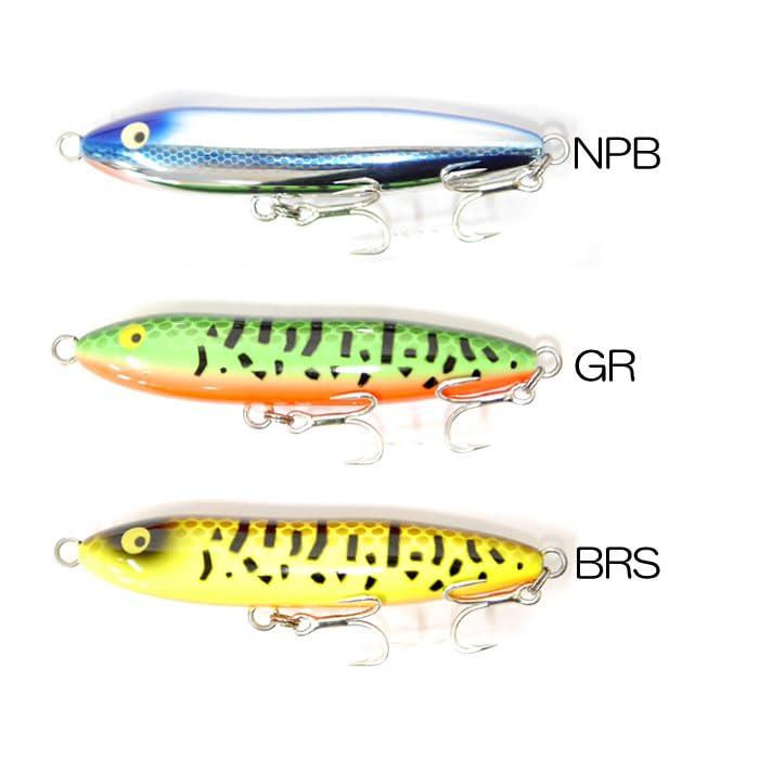 ボンバダアマゾンスプーク◆全長:110mm◆重量:25g★ボンバダ特製ヘビーデューティーペンシル。名作オールドペンシルの利点を物理的に再構築。高強度大型エイトリングを装備、ボディ頭頂部をABS無垢状にしてダイブ性を高め、同時に強度を格段に向上。ドッグウォークはもちろん、ヘッドダイブ性能が高く、水面直下ドッグウォークなどを織り交ぜた3Dアクションが得意。高速巻きでも垂直アイとわずかなボディのソリとのバランスが、水絡みよくオートパニックアクションを可能に。強度向上の恩恵により卓越した遠投性能。身近な釣り場から、ソルトフィッシング、そしてアマゾンまで世界の炭水海水魚種問わず。