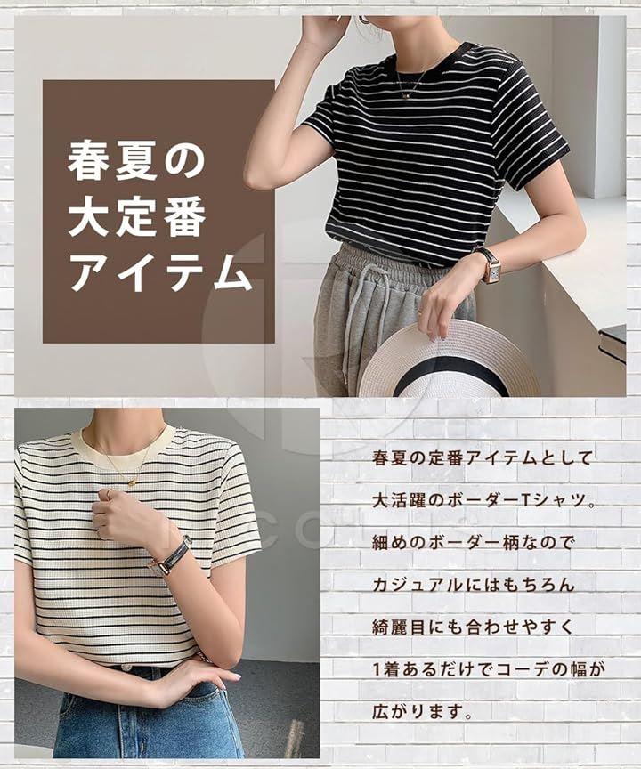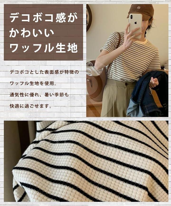 細めのボーダー柄なのでカジュアルにはもちろん綺麗目にも合わせやすく1着あるだけでコーデの幅が広がります。