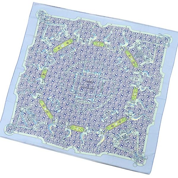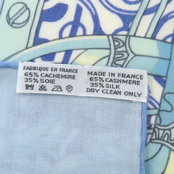 エルメス HERMES ショール カレ140 CARRE カレ140 ストール カシミヤ シルク ブルー×グリーン 【MORS ETGOURMETTES/馬術と鎖】 - レディース 【箱】定番 人気 美品 【中古】