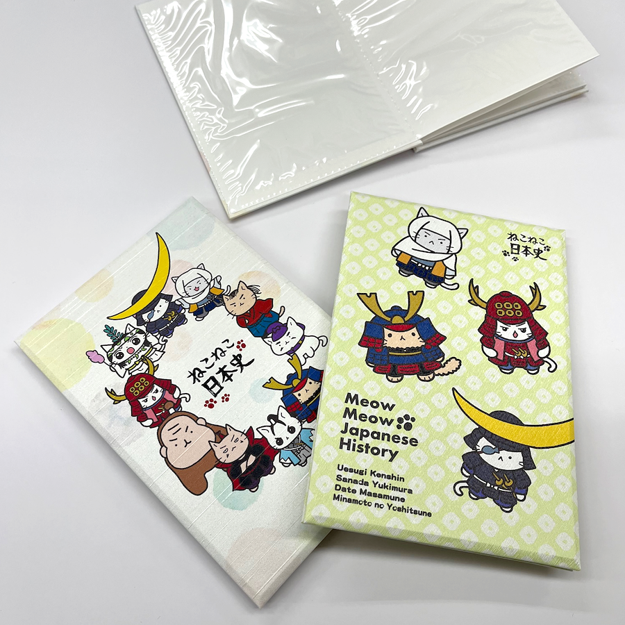 かわいい「ねこねこ日本史」のキャラクターをモチーフに印刷したオリジナルのポケット式御朱印帳です。