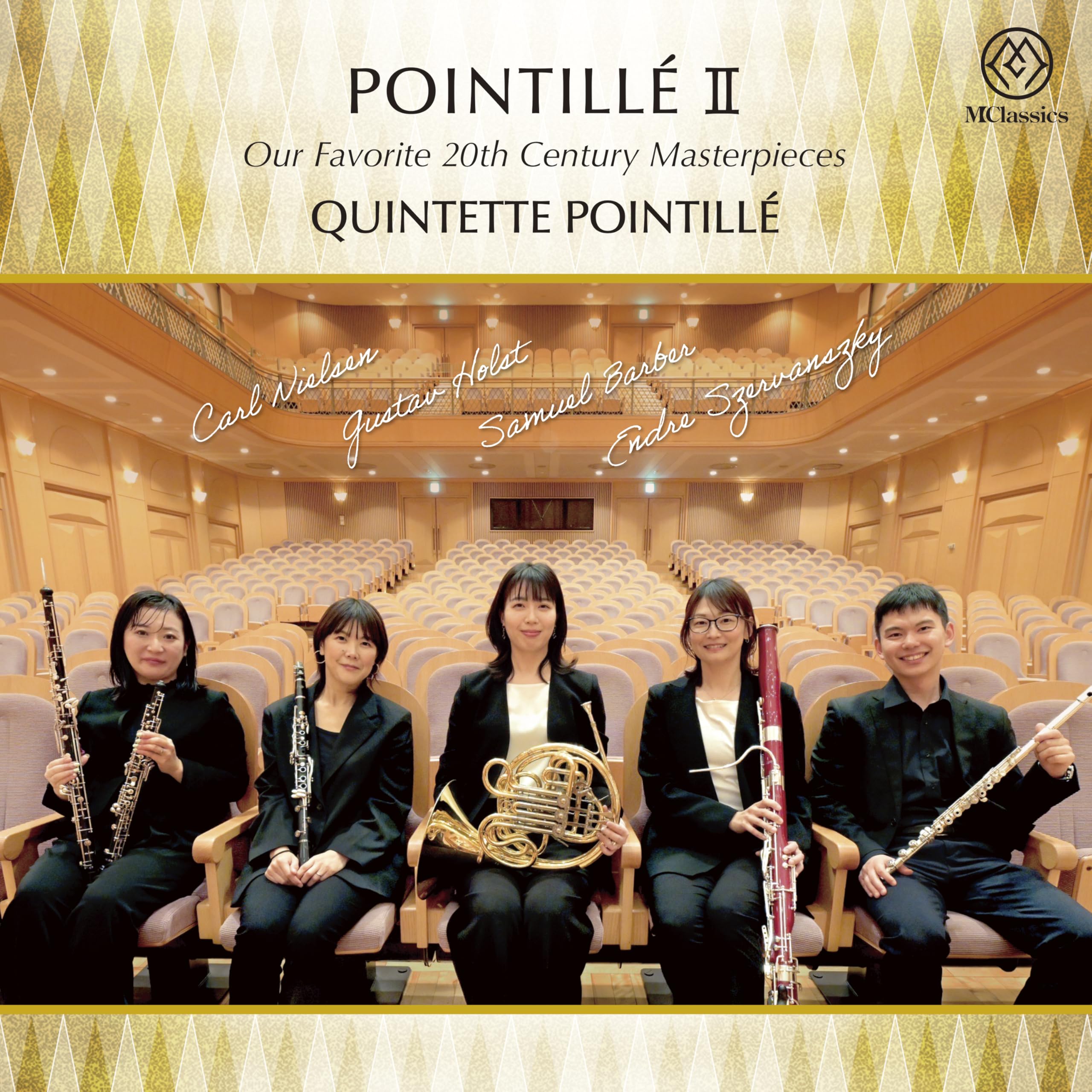 透明な色彩感。美麗なる響き。煌めく音色。ポワンティエ第2弾アルバム。現在積極的な活動で注目を集める愛知室内オーケストラの管楽器メンバーによって結成された木管五重奏団「クインテット・ポワンティエ」の第2弾アルバムです。今作では、20世紀において木管五重奏のために書かれた珠玉の名曲を収録。色彩豊かで透明感あるサウンドを持つ「ポワンティエ」の特徴がより発揮されます。ニールセンやホルストなど美しく幻想的なメロディ、バーバーの独特の濃密な響き。木管五重奏の美麗な世界が広がります。メンバーによるソリスティックな高い技術も必聴。日頃から音楽を共にする「ポワンティエ」の煌めくアンサンブルの妙を是非お楽しみ下さい。
