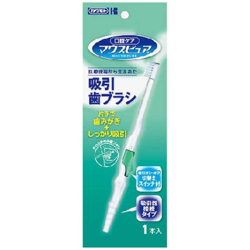 【ご使用方法】・吸引歯ブラシを袋から取り出し、吸引チューブに接続してください。・ブラシ部分に少量の水分を含ませ、軽く水をきってから歯を清掃してください。・必要時にスイッチを手前にスライドさせて吸引をオンにし、吸引物を吸引してください。・唾液の溜まりやすいお口の奥は歯ブラシの先端部で吸うと吸引しやすいです。・ブラシに水を含ませたり、ケアの途中ですすぐ時には吸引をオフにすると使いやすいです。★使い方の注意点・口腔内の大きな汚れは吸引口や柄、チューブを詰まらせるおそれがありますので、先に取り除いて、水分のみを吸引してください。・使用の際には、使い切り手袋、マスク、ゴーグルなどの防護具の着用をお勧めします。・ご使用にあたっては、医師、歯科医師、看護師、歯科衛生士などの指導に従ってください。・本品は使い切りの製品です。