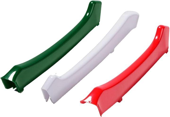 イタリア国旗に使われる緑、白、赤の3色をそれぞれ専用に加工して取り付け位置が間違えないようになっています。