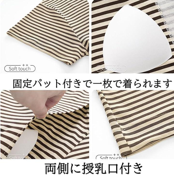 授乳口や、胸元には固定パッドがついているのが便利なだけでなく、シンプルで可愛いデザインで、パジャマだけでなくルームウェアにもぴったりです。
