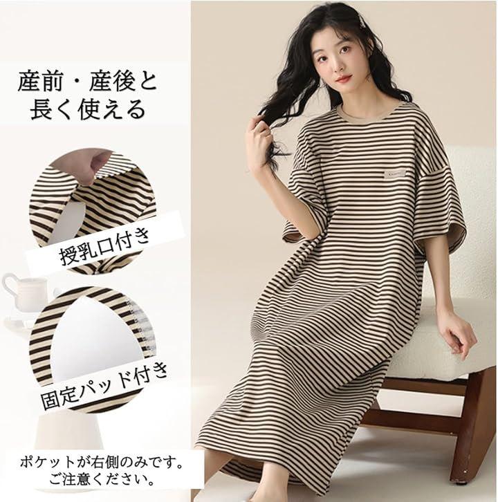 産前から産後までご使用いただけるこのワンピースは、授乳口が付いているため、赤ちゃんの授乳もスムーズで安心です。