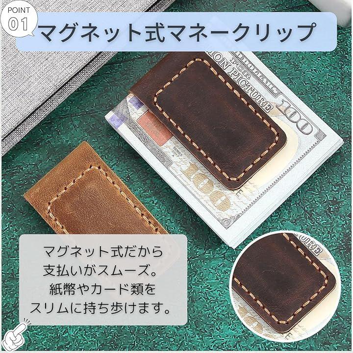 「マグネット式マネークリップ」紙幣やよく使うカード類をスリムに持ち歩くことができます。