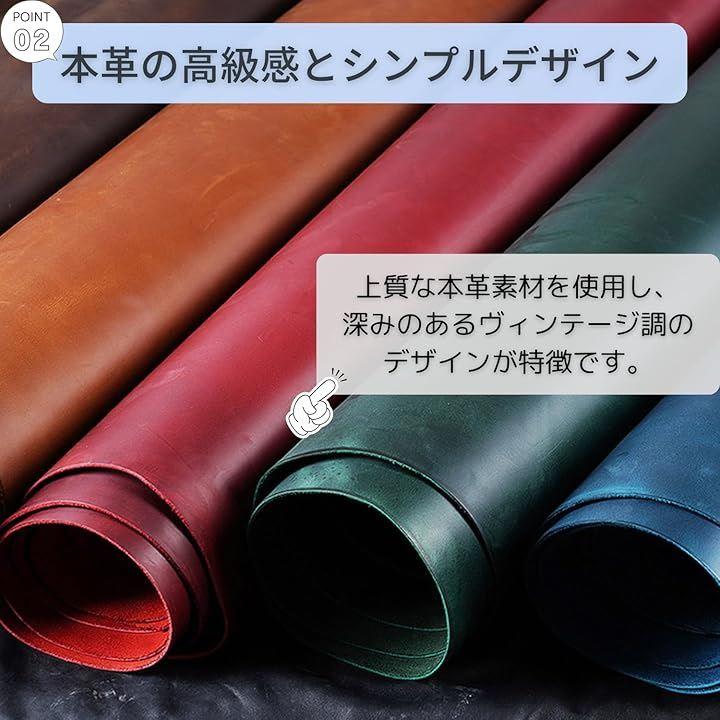 「本革の高級感とシンプルなヴィンテージデザイン」柔らかく手に馴染む上質な本革素材を使用し、深みのあるヴィンテージ調のデザインが特徴です。