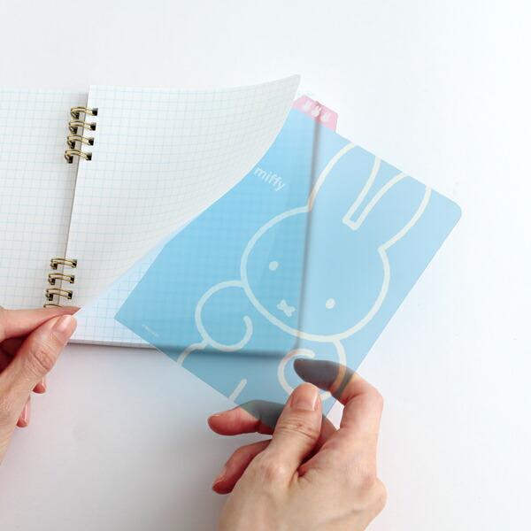 ミッフィーのポップな色使いを組み合わせたデザインのシリーズ!リングノート・スクエア用の下敷きです。併せて使うと便利♪