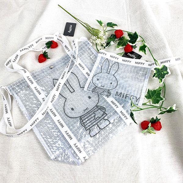 長さ調節が可能なロゴのリピート柄のテープ付き☆中はばっちり見えるクリア仕様です